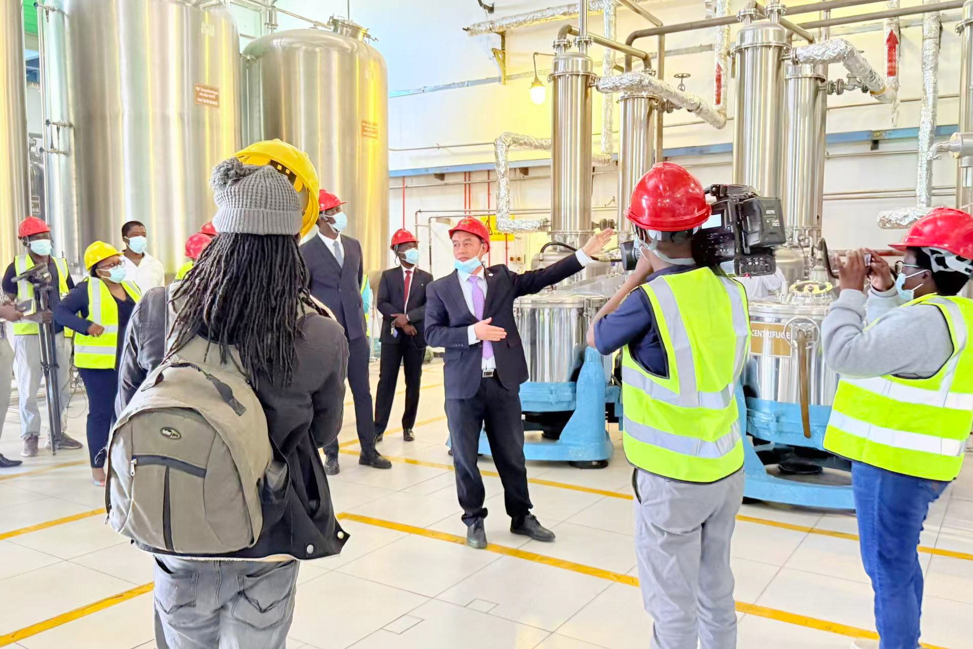 非洲 F&G 總經(jīng)理朱華文(右一)向代表團介紹相關(guān)情況