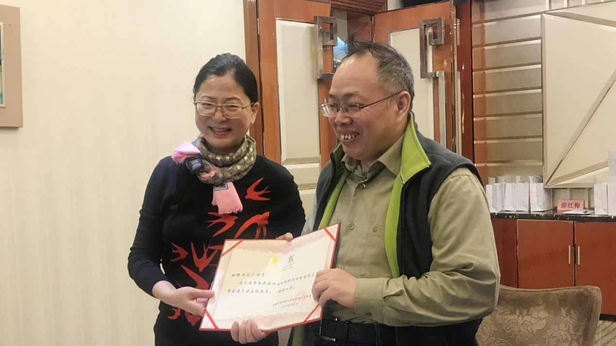 袁肖琴會(huì )長(cháng)向吳永寧研究員頒發(fā)證書(shū)