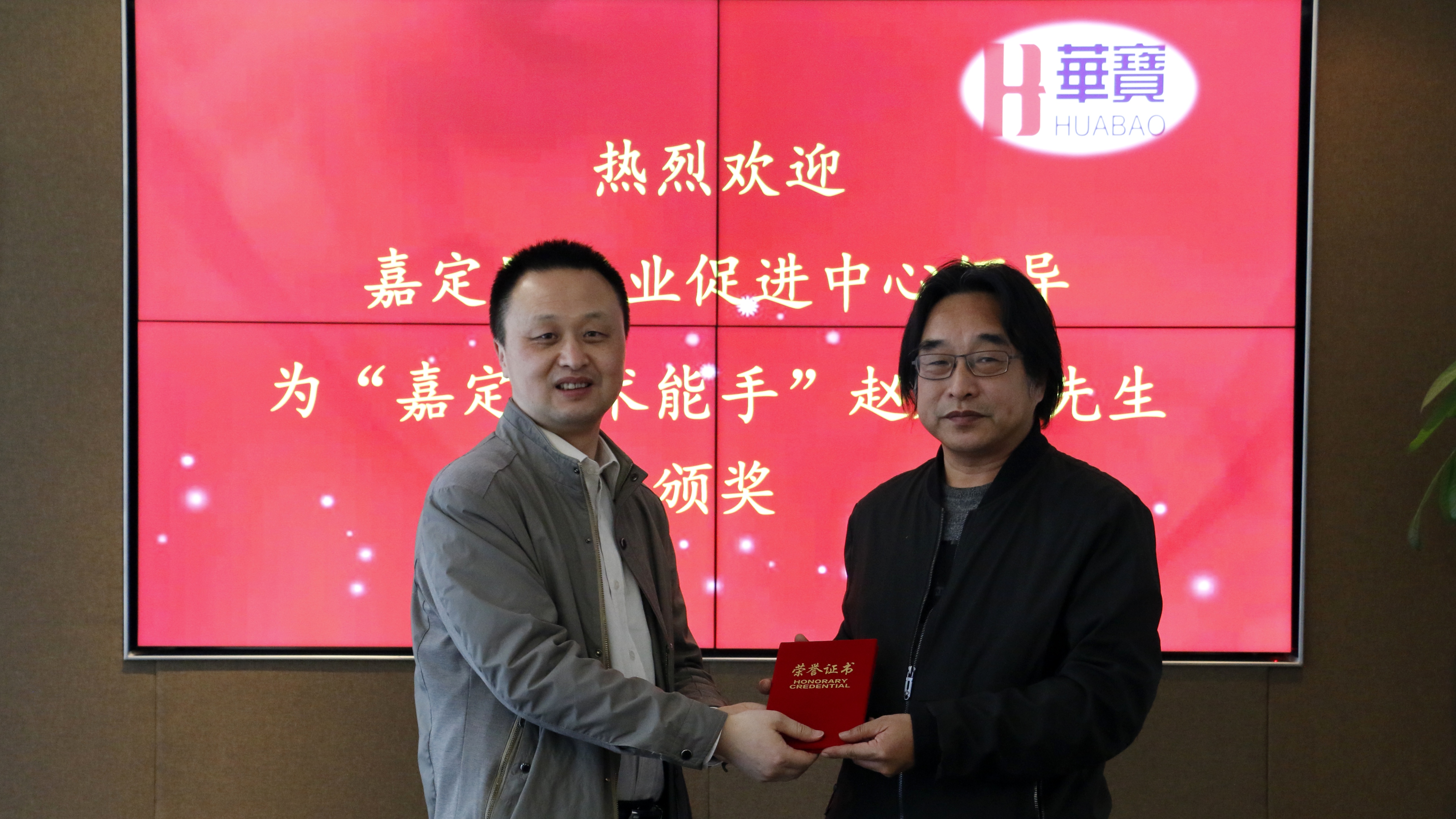 4月28日下午3時(shí)許,嘉定區就業(yè)促進(jìn)中心主任沈繼良先生、科長(cháng)張夷先生,嘉定工業(yè)區社區事務(wù)受理服務(wù)中心主任陳靜女士專(zhuān)程來(lái)華寶股份上海園區為趙震毅先生頒獎,華寶股份人力資源部總監陳靜女士,華寶股份上海園區聯(lián)合工會(huì )副主席王武航先生參加頒獎儀式。