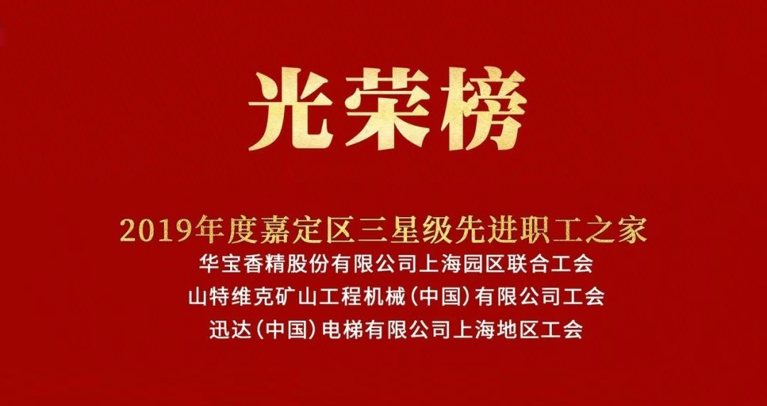 近日,華寶香精股份有限公司上海園區聯(lián)合工會(huì )(以下簡(jiǎn)稱(chēng)“聯(lián)合工會(huì )”)榮獲由上海市嘉定區總工會(huì )頒發(fā)的2019年度星級(三星級)“先進(jìn)職工之家”稱(chēng)號。