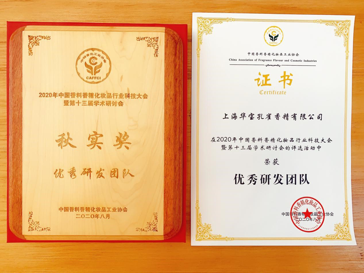 上海華寶孔雀香精有限公司榮獲優(yōu)秀研發(fā)團隊榮譽(yù)稱(chēng)號