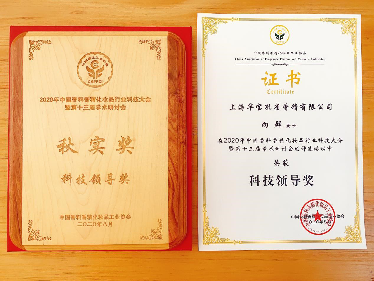 華寶孔雀總調香師向群女士榮獲科技領(lǐng)導獎榮譽(yù)稱(chēng)號