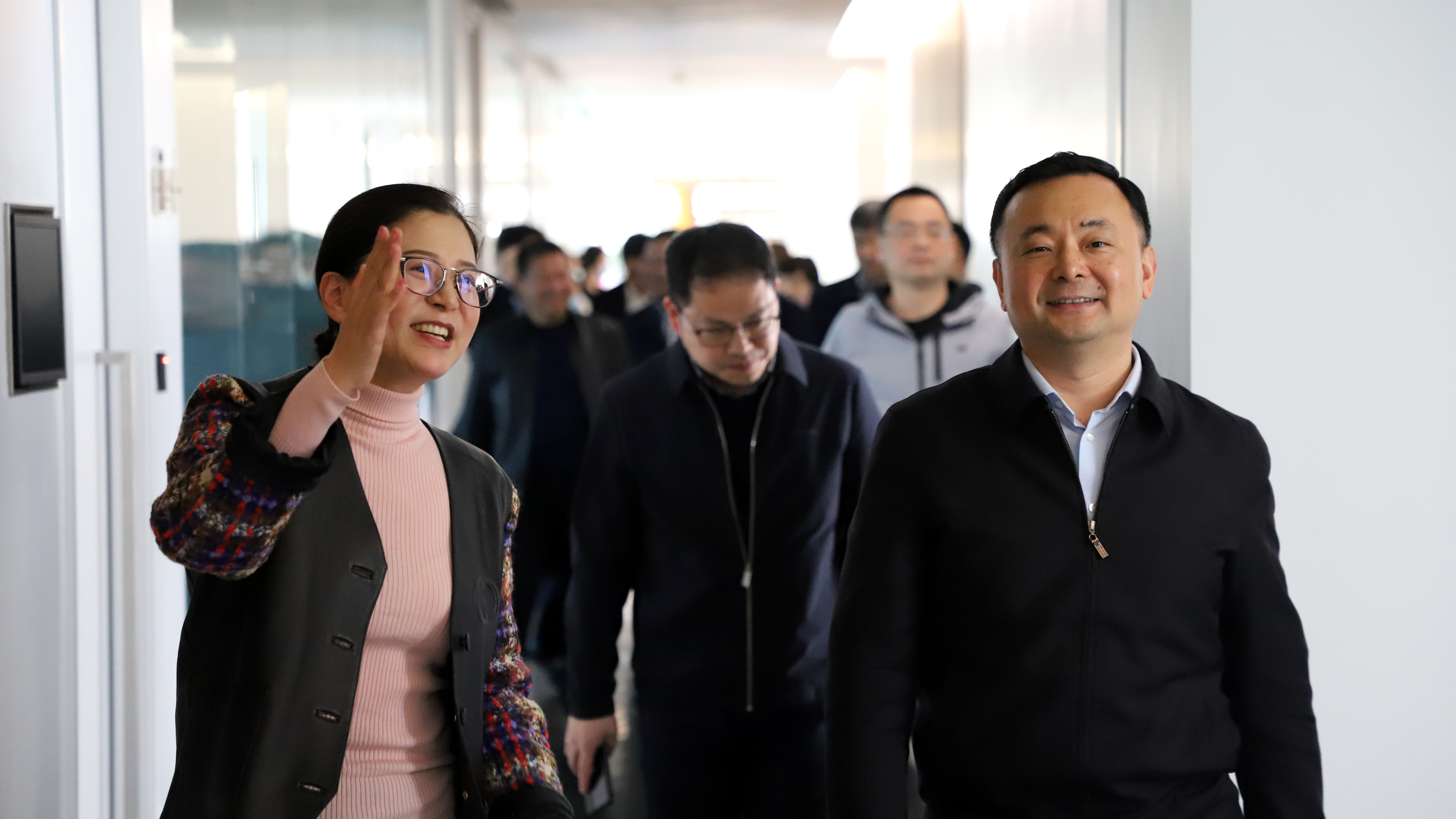 上午11時(shí)許,鷹潭市委副書(shū)記、市長(cháng)陳敏,市委常委、副市長(cháng)王亞青,市政府副市長(cháng)張志堅,高新區黨工委書(shū)記李衛國及鷹潭市、高新區相關(guān)部門(mén)領(lǐng)導一行蒞臨華寶股份上海園區調研指導,華寶股份董事、總裁袁肖琴,副總裁、董事會(huì )秘書(shū)胡偉,副總裁、財務(wù)總監張捷等公司領(lǐng)導熱情接待了陳市長(cháng)一行。
