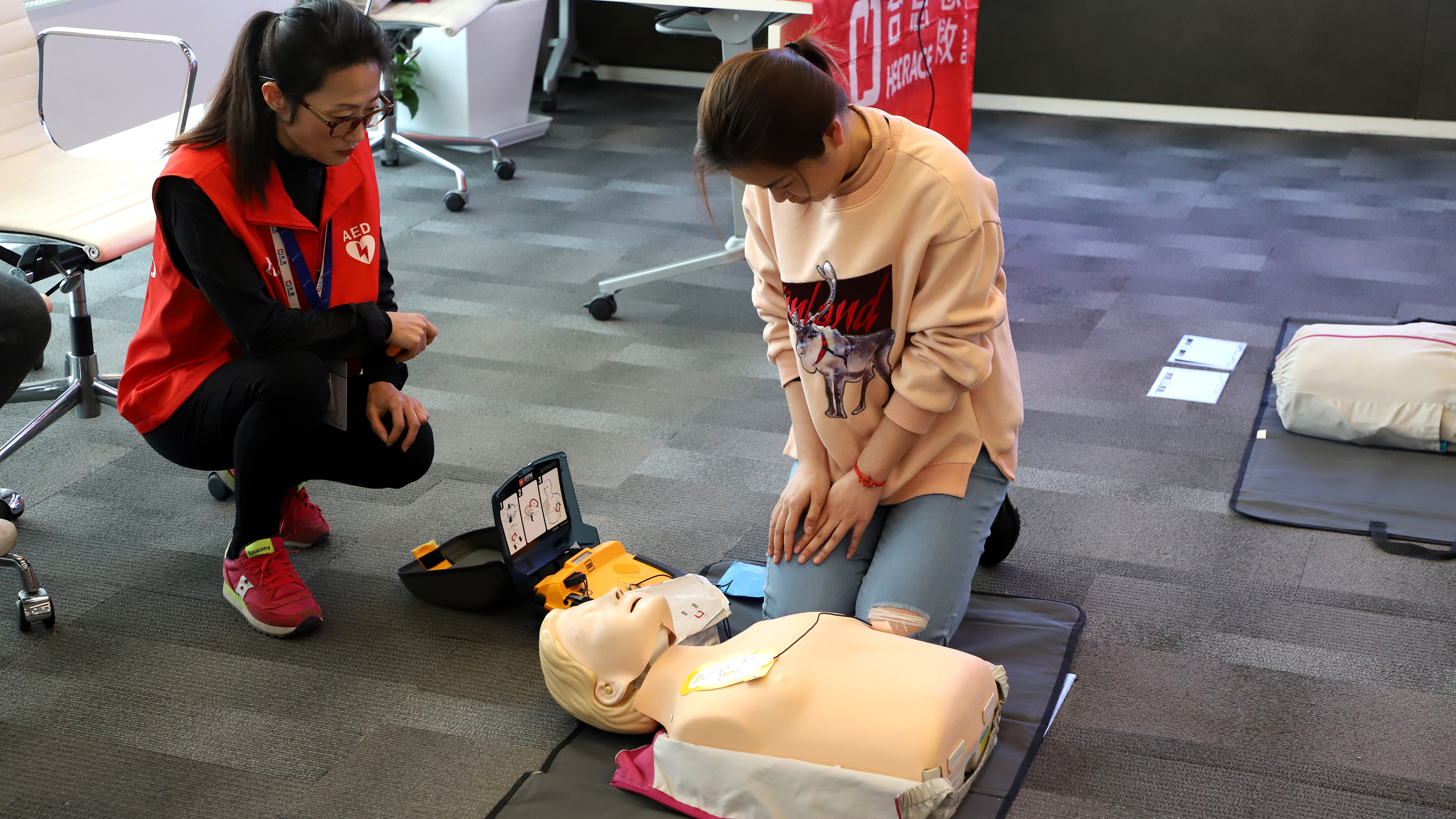 華寶始終致力于員工人文關(guān)懷和生命健康的關(guān)注。我們關(guān)注員工的身心健康,不定期開(kāi)展各種心理解壓培訓課;我們關(guān)注員工業(yè)余文體生活,不定期開(kāi)展各類(lèi)文體活動(dòng),愉悅身心;我們還關(guān)注員工身體健康、生命安全,除了每年的健康體檢,我們還希望通過(guò)“CPR+AED救護”和消防培訓讓員工了解并掌握一些自救互救技能。我們希望每一名員工都能擁有健康的身心,掌握一些基本的救護技能,安心工作,快樂(lè )生活。