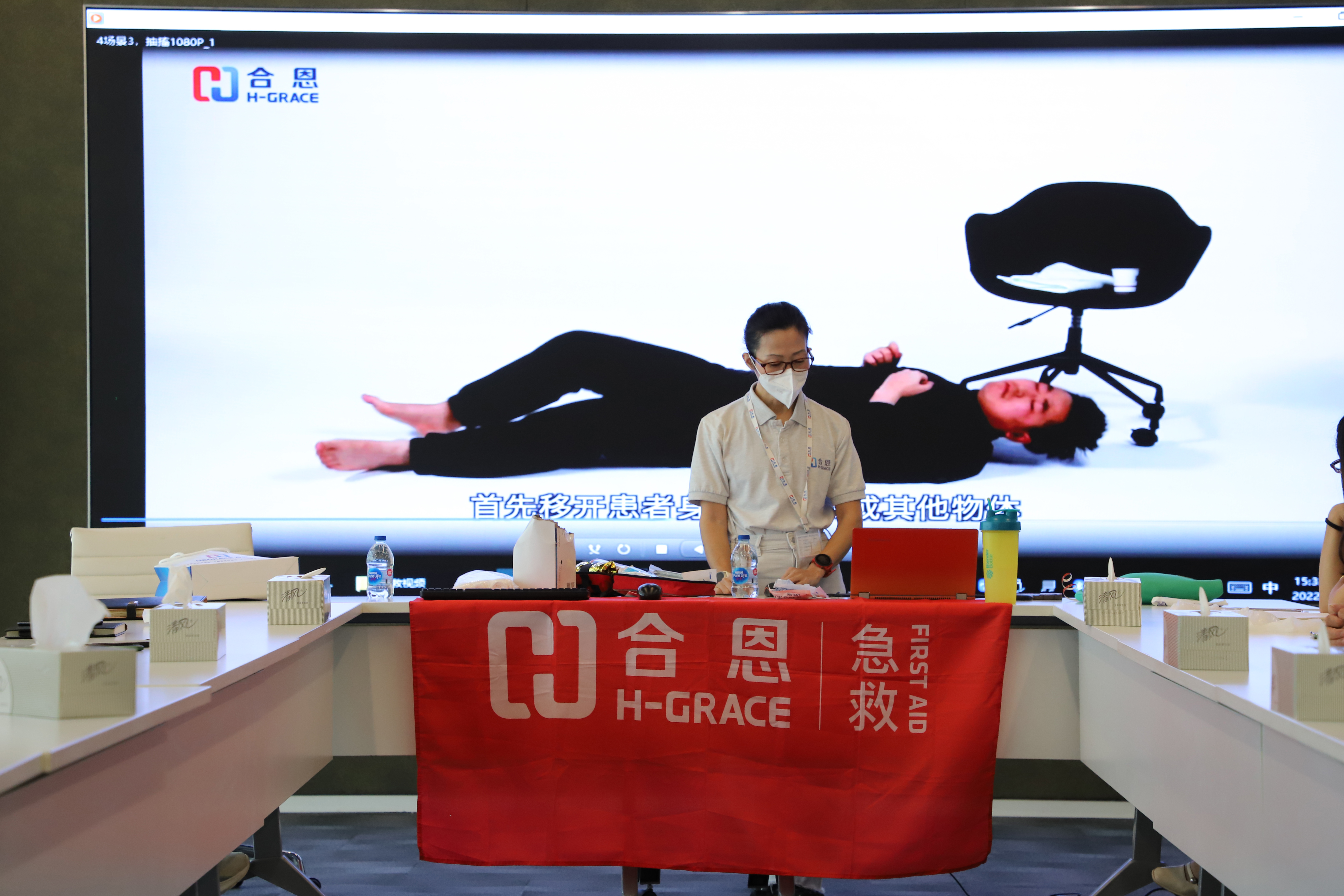 培訓老師給大家演示海姆立克急救法的正確操作步驟