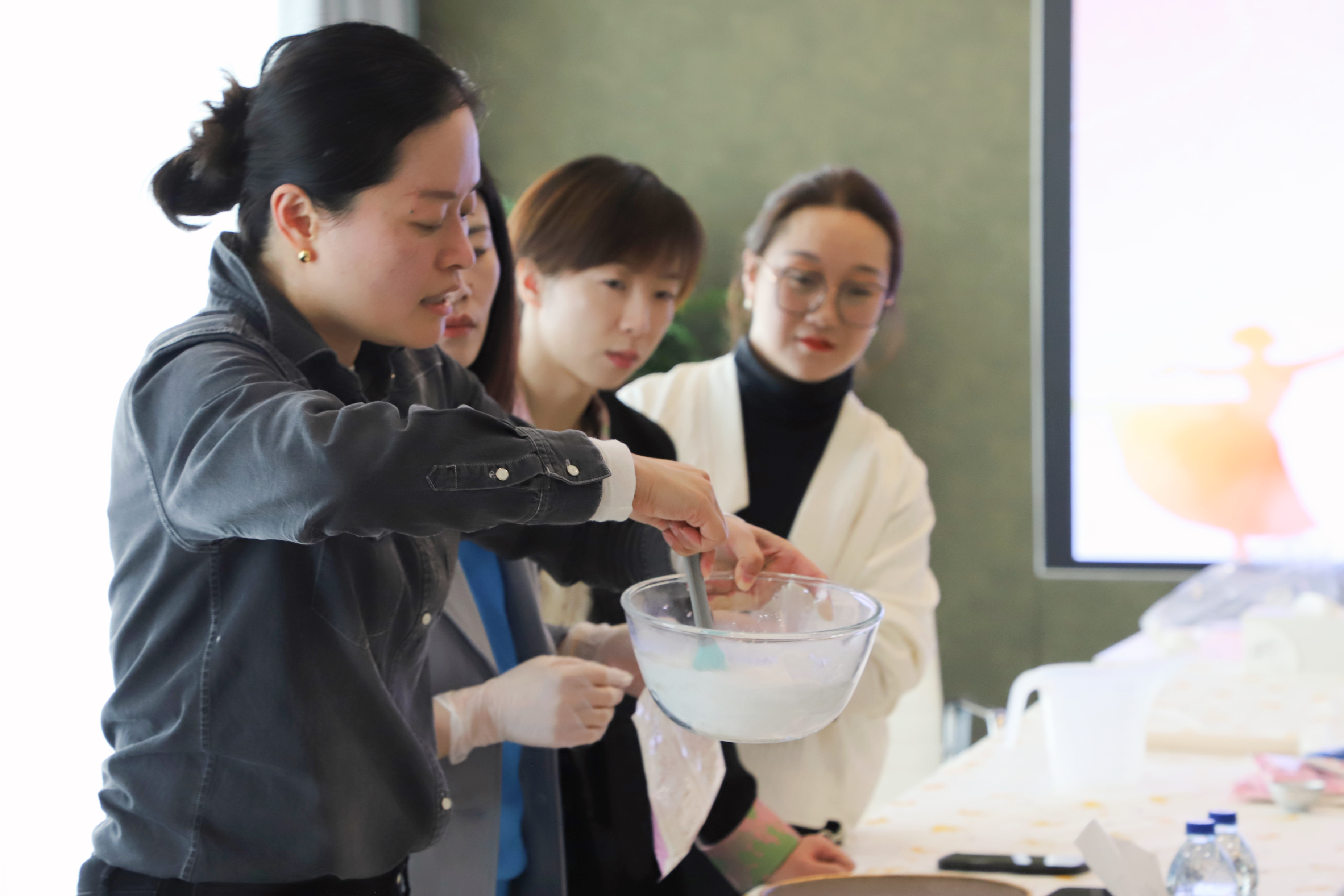 陽(yáng)春三月,春風(fēng)和煦。為豐富企業(yè)文化生活,緩解女職工工作壓力,營(yíng)造輕松積極的節日氛圍。3月8日上午,聯(lián)合工會(huì )組織工會(huì )女職工開(kāi)展了“甜蜜用心創(chuàng )造”雪媚娘制作體驗活動(dòng),共計30余名女職工參加了活動(dòng)?;顒?dòng)開(kāi)始后,聯(lián)合工會(huì )女工委員嚴卿女士為大家講解了制作雪媚娘的步驟、所需材料以及分量,并為大家現場(chǎng)演示制作雪媚娘的過(guò)程。在嚴委員的指導下,大家分組進(jìn)行,開(kāi)啟了自己的甜品制作之旅。在制作過(guò)程中,大家都化身甜品小達人,相互討論、互相幫忙,現場(chǎng)充滿(mǎn)歡聲笑語(yǔ),經(jīng)過(guò)1小時(shí)的制作,香甜軟糯的雪媚娘完成啦。