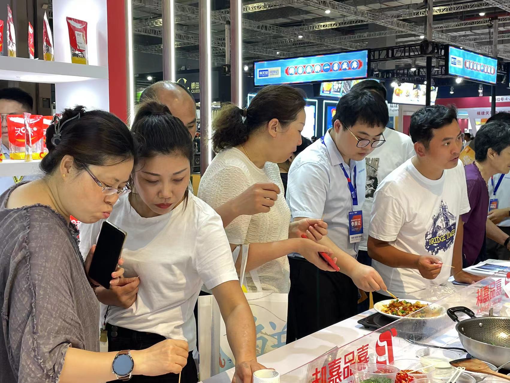 在本次展會(huì )上,華寶股份投資企業(yè)嘉品嘉味以“湘氣十足,食不可擋”為主題,攜帶“正宗湖湘風(fēng)味”產(chǎn)品亮相,融入當下生活的元素和節奏,讓美味變得更加多元化。“螺螄粉風(fēng)味”、“湘式鹵水”、“鹵味小炒醬系列”等明星產(chǎn)品和新品系列,精選優(yōu)質(zhì)原料,用心研制好產(chǎn)品,用獨特風(fēng)味獲得每位食客的心。7月炎熱的天氣無(wú)法抵擋大家的熱情,多位客商駐足嘉品嘉味展位現場(chǎng)品嘗體驗、洽談交流。