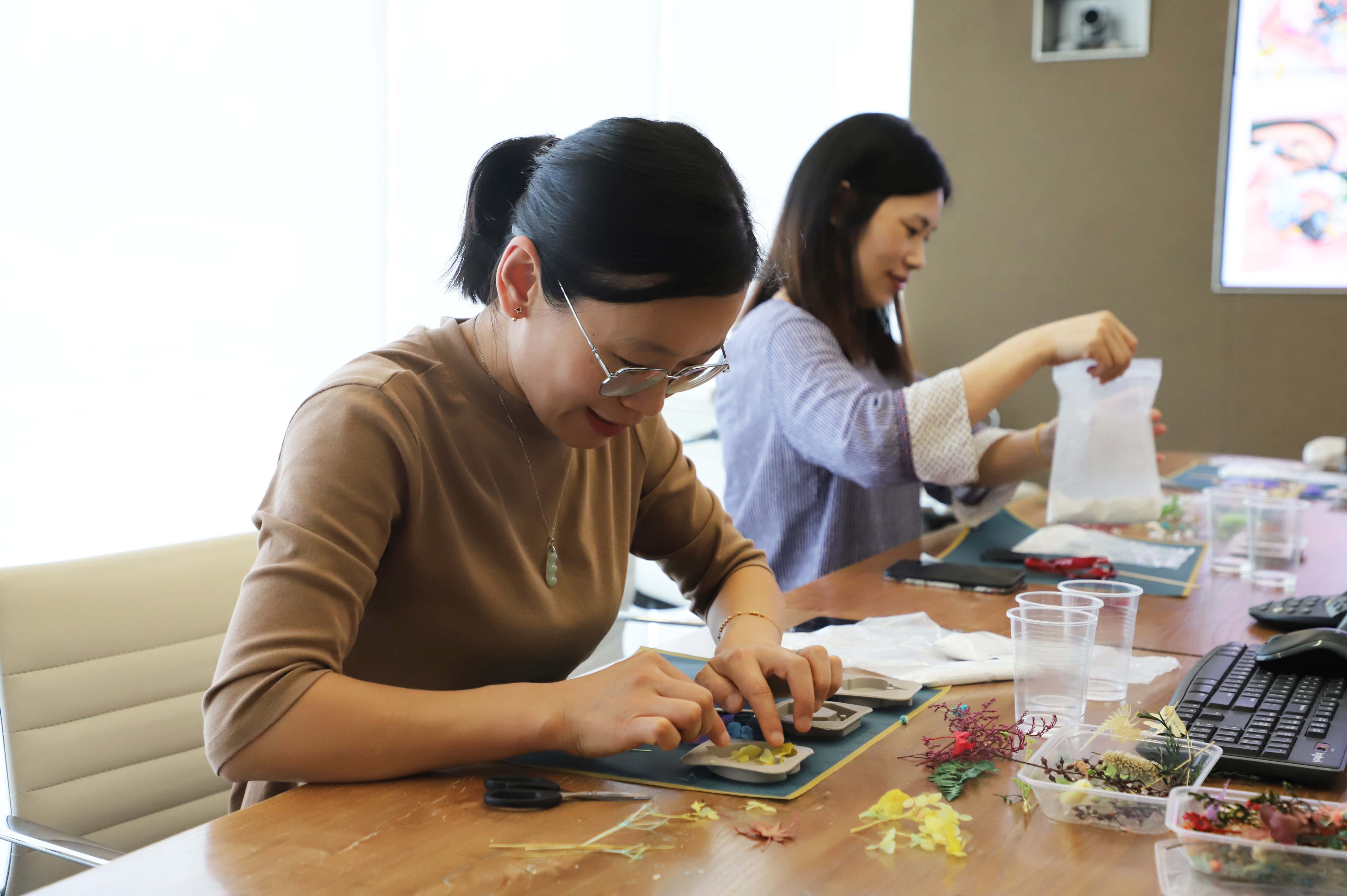 在手工制作環(huán)節中,學(xué)員們利用石膏、干花親手制作出手工香薰擴香石,大家一邊放松自己,一邊充分發(fā)揮自己的想象力與動(dòng)手能力來(lái)創(chuàng )造各自的作品,體驗手工制作帶來(lái)的樂(lè )趣。