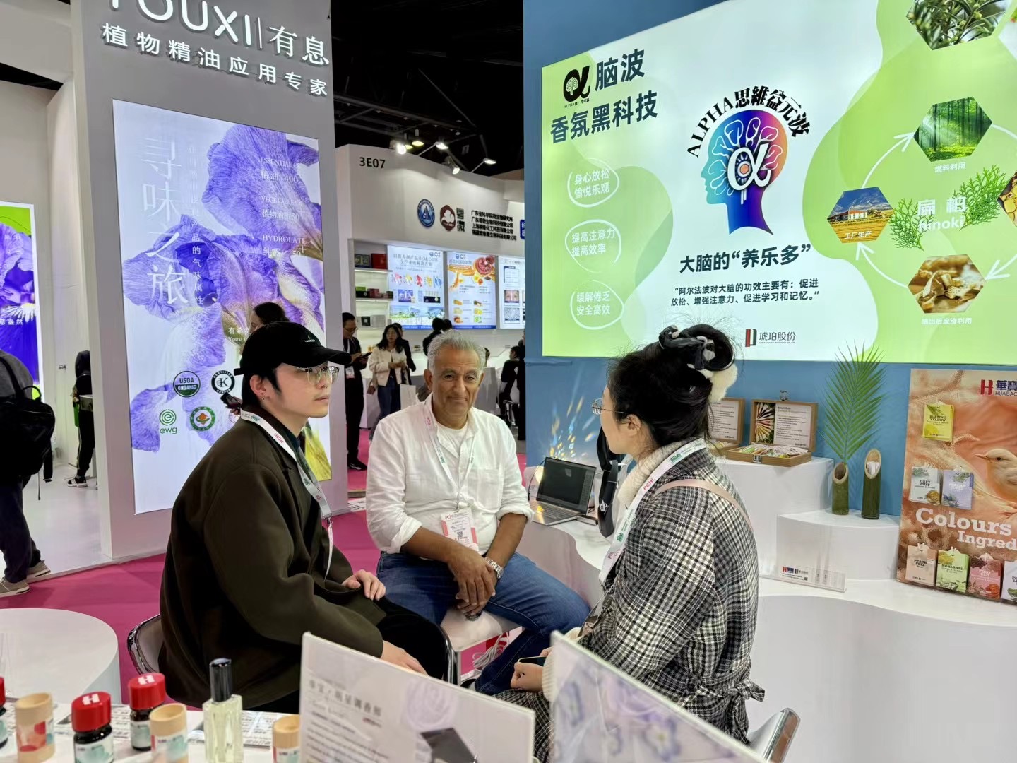 除了香精產(chǎn)品,本次展會(huì )上廈門(mén)琥珀微膠囊香精技術(shù)和α腦波技術(shù)驚艷亮相。