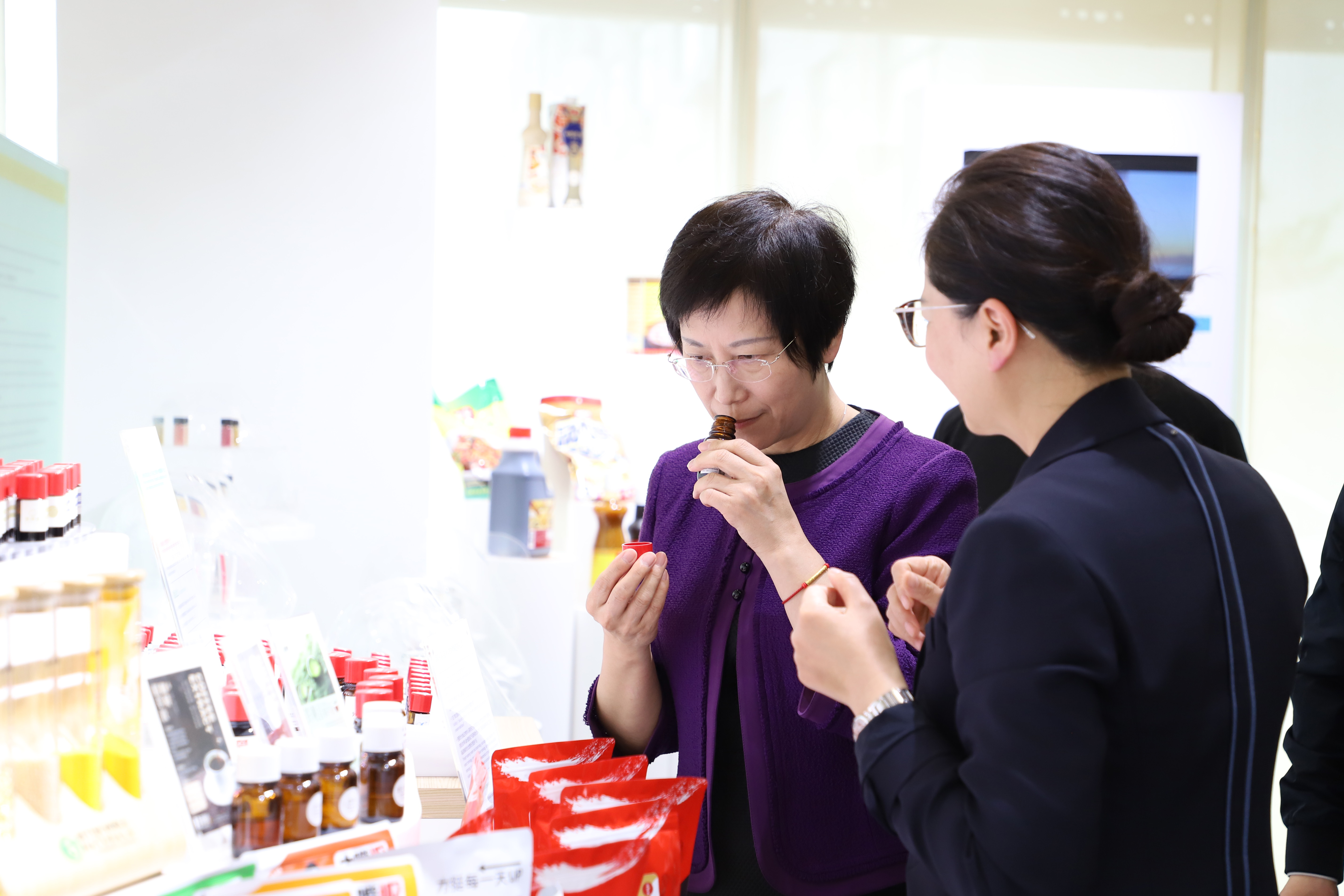 袁總陪同顏理事長(cháng)一行首先參觀(guān)了公司展廳,向客人們介紹華寶整體情況、全球布局、發(fā)展歷程以及業(yè)務(wù)板塊。顏理事長(cháng)充分肯定了華寶在開(kāi)發(fā)創(chuàng )新風(fēng)味、探索香精發(fā)展新格局等方面取得的成績(jì),并饒有興趣地品鑒了相關(guān)風(fēng)味產(chǎn)品。