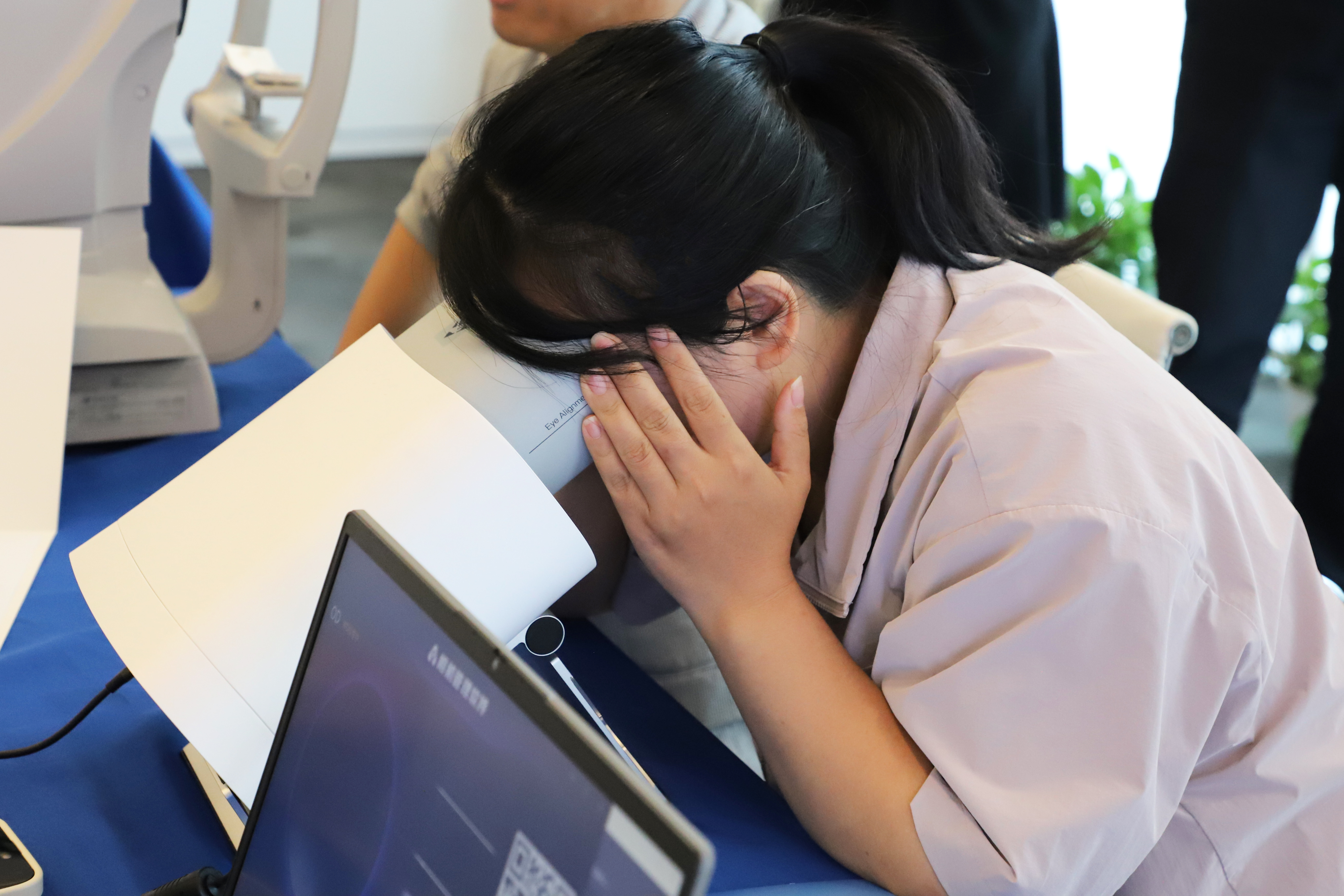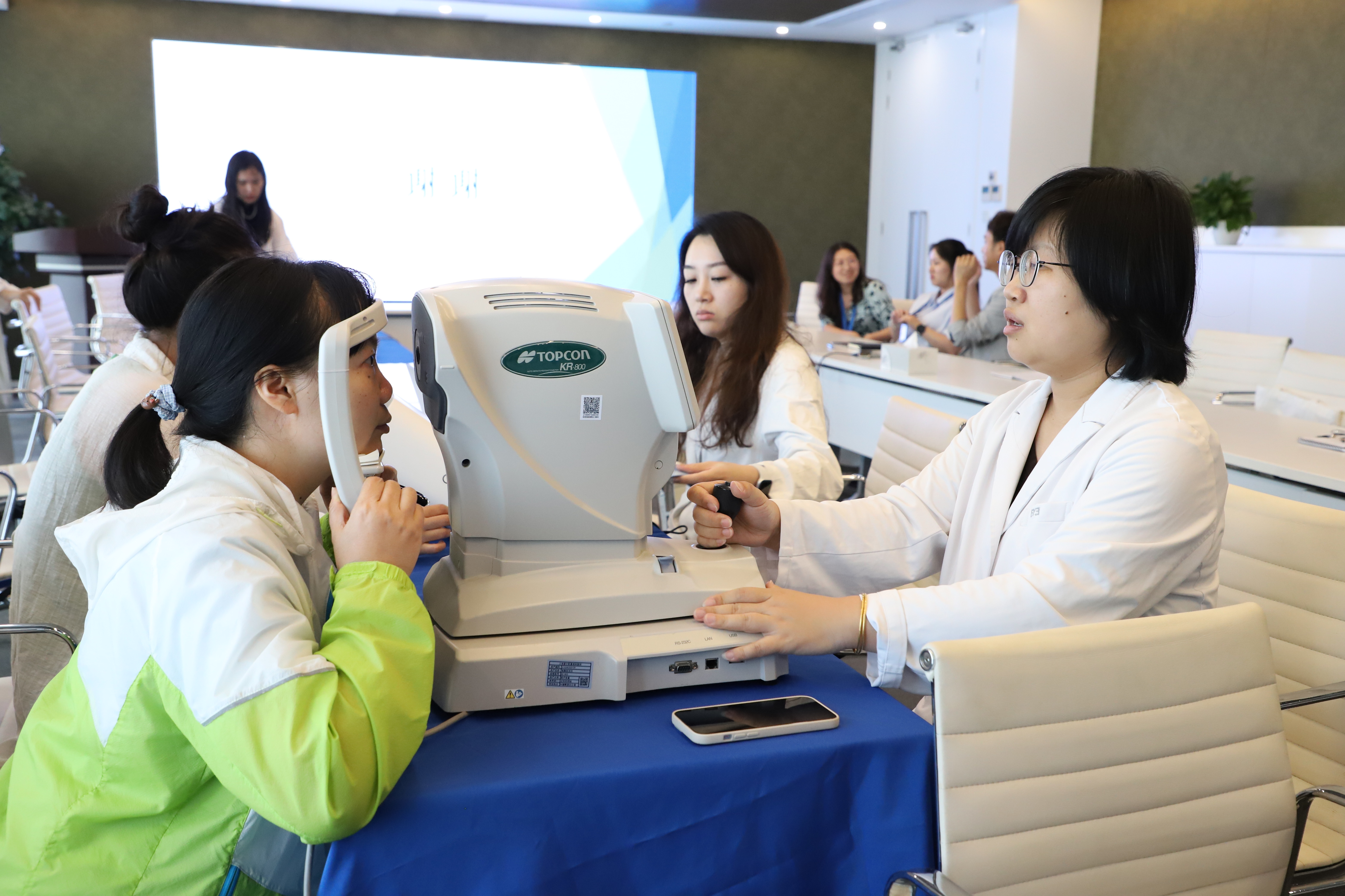 緊接著(zhù),員工們進(jìn)行了一系列專(zhuān)業(yè)的眼科檢查。檢查內容包括電腦驗光、淚分測試、干眼霧化體驗、AI眼底照相,這些檢查項目不僅涵蓋了視力檢測,還評估了眼睛的整體健康狀況。與此同時(shí),醫護人員根據每位員工的檢查結果,為大家建立了詳細的眼部健康檔案,確保每個(gè)人都能及時(shí)了解自己的眼部狀況。